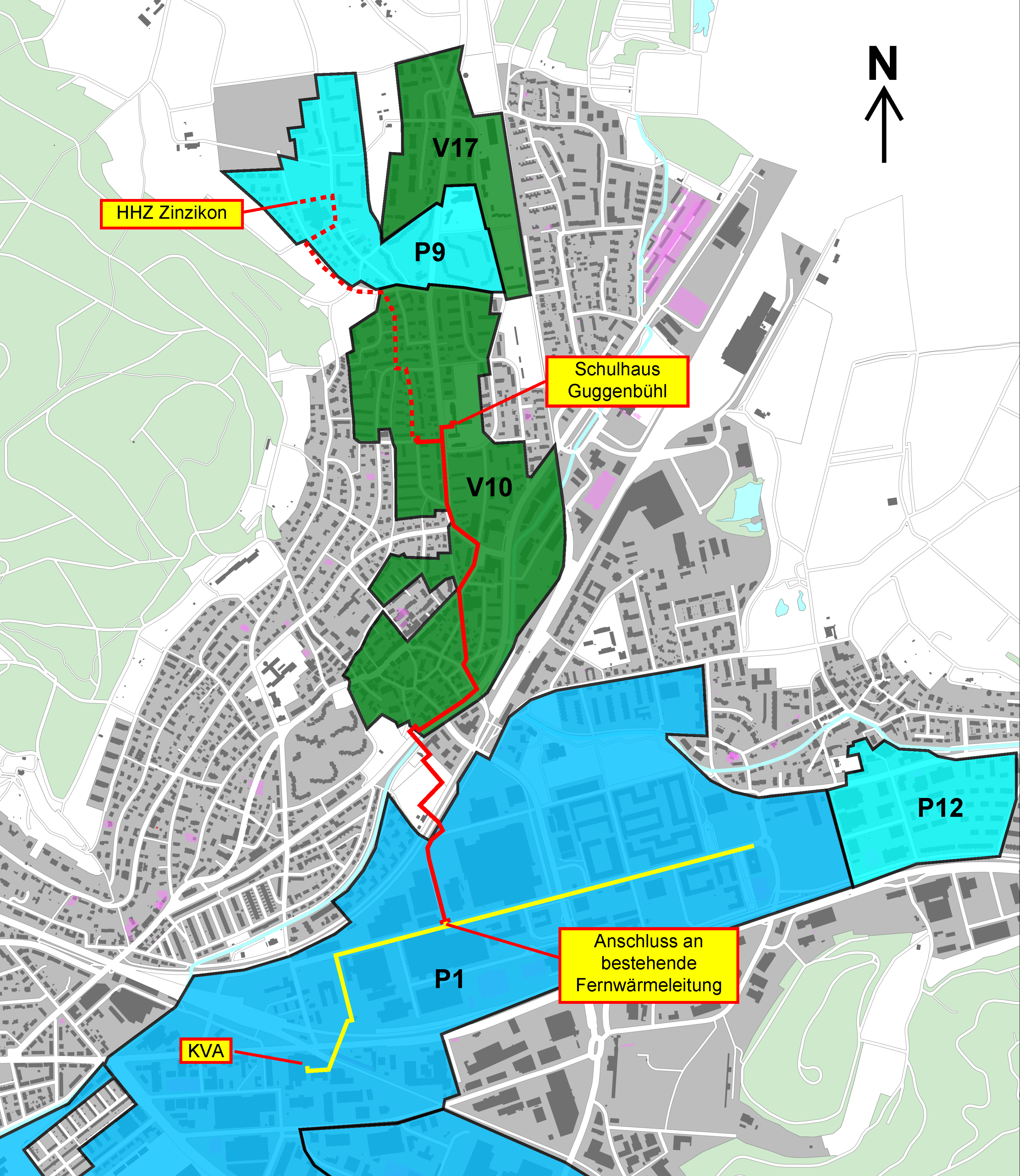 Erneuerbare Gebäudewärme ist einer der wirksamsten Hebel, um den CO2-Ausstoss im Gebäudebereich zu senken. Mit dem vorliegenden Bauprojekt können diverse Liegenschaften in Oberwinterthur mit Abwärme der KVA versorgt werden. Ausserdem kann die jetzige Gasheizung des Schulhauses Guggenbühl nach Ablauf ihrer Lebensdauer durch ein erneuerbares Heizsystem ersetzt werden. Dies steht im Einklang mit dem Ziel der Stadtverwaltung, bis 2035 Netto Null Tonnen CO2-Ausstoss zu erreichen. Die Einsparung von CO2 beträgt beim vorliegenden Bauprojekt insgesamt jährlich bis zu 2500 Tonnen CO2. Mit den weiteren Ausbauschritten liegt die berechnete CO2-Einsparung bei 4300 Tonnen CO2 pro Jahr.