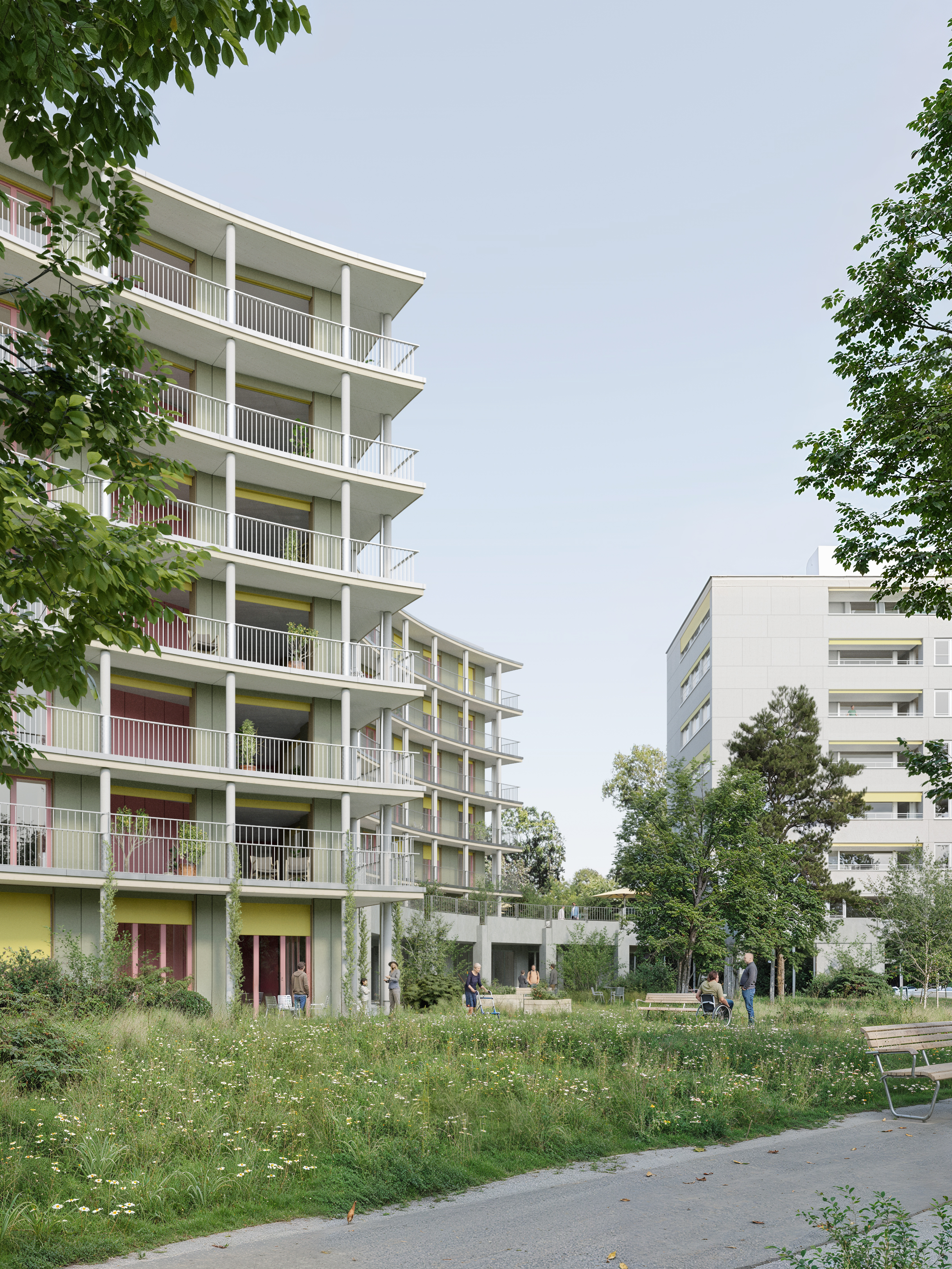 Die Positionierung des Neubaus berücksichtigt den geschützten Baumbestand und den historischen denkmalgeschützten Garten. Dieser wird auch weiterhin öffentlich zugänglich sein und als Aufenthalts- und Erholungsraum dienen.