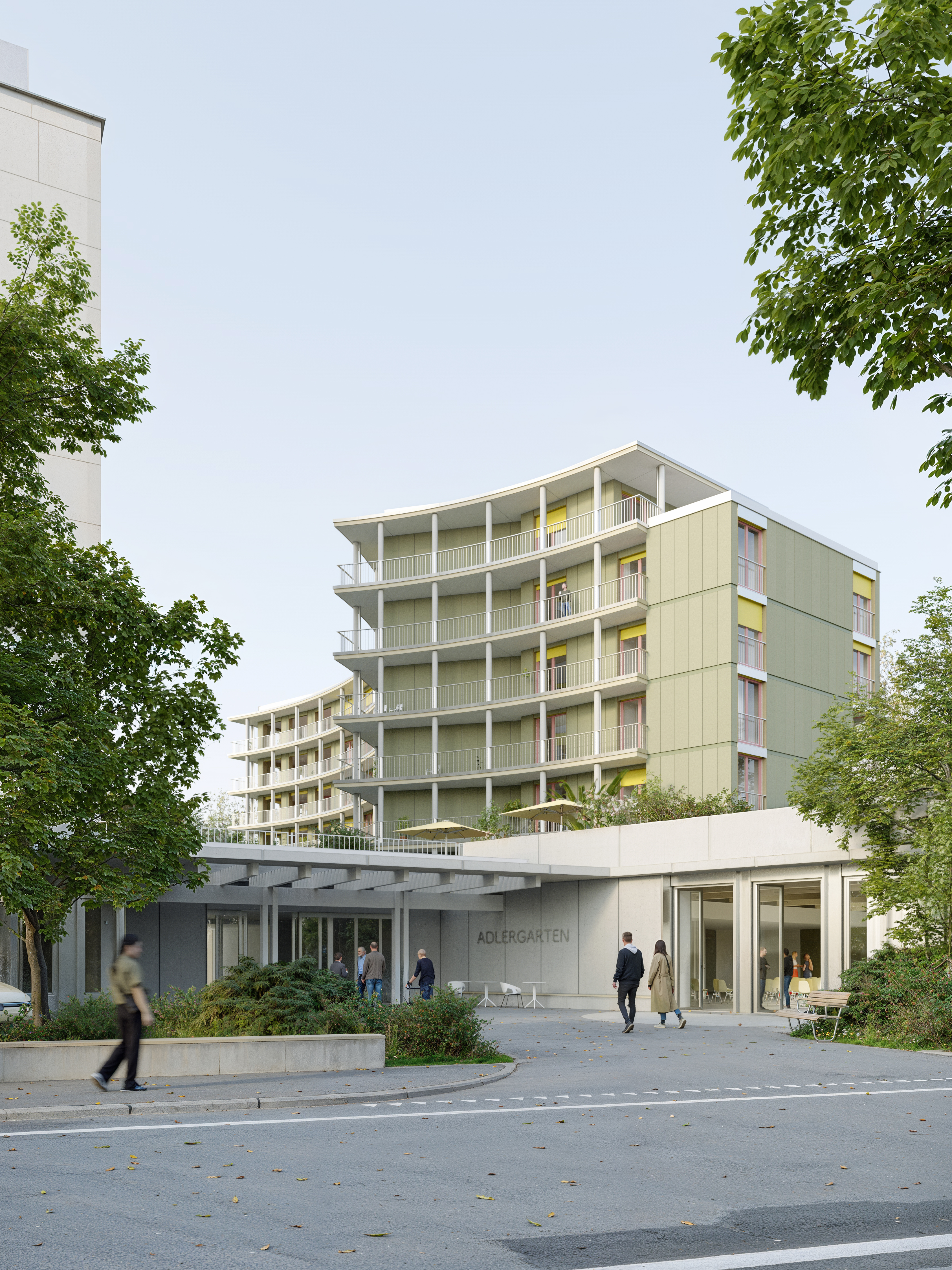 Auf dem Areal des Alterszentrum Adlergarten soll in den nächsten Jahren ein Erweiterungsneubau entstehen. Dieser wird seitlich an das bestehende Hauptgebäude anschliessen und mit diesem verbunden. Der Verbindungsbau wird neu auch den Haupteingang bilden. Der Neubau wird insgesamt 120 Einzelzimmer bieten, wovon 24 auf eine Wohngruppe für Menschen mit Demenz entfallen. Für sie wird es auch einen Demenzgarten auf dem Dach des Verbindungsbaus geben. Der Erweiterungsneubau umfasst zudem Garderoben, Büros, Räume für das Tageszentrum von Alter und Pflege sowie für Aktivierung und Therapien und einen neuen Veranstaltungssaal.