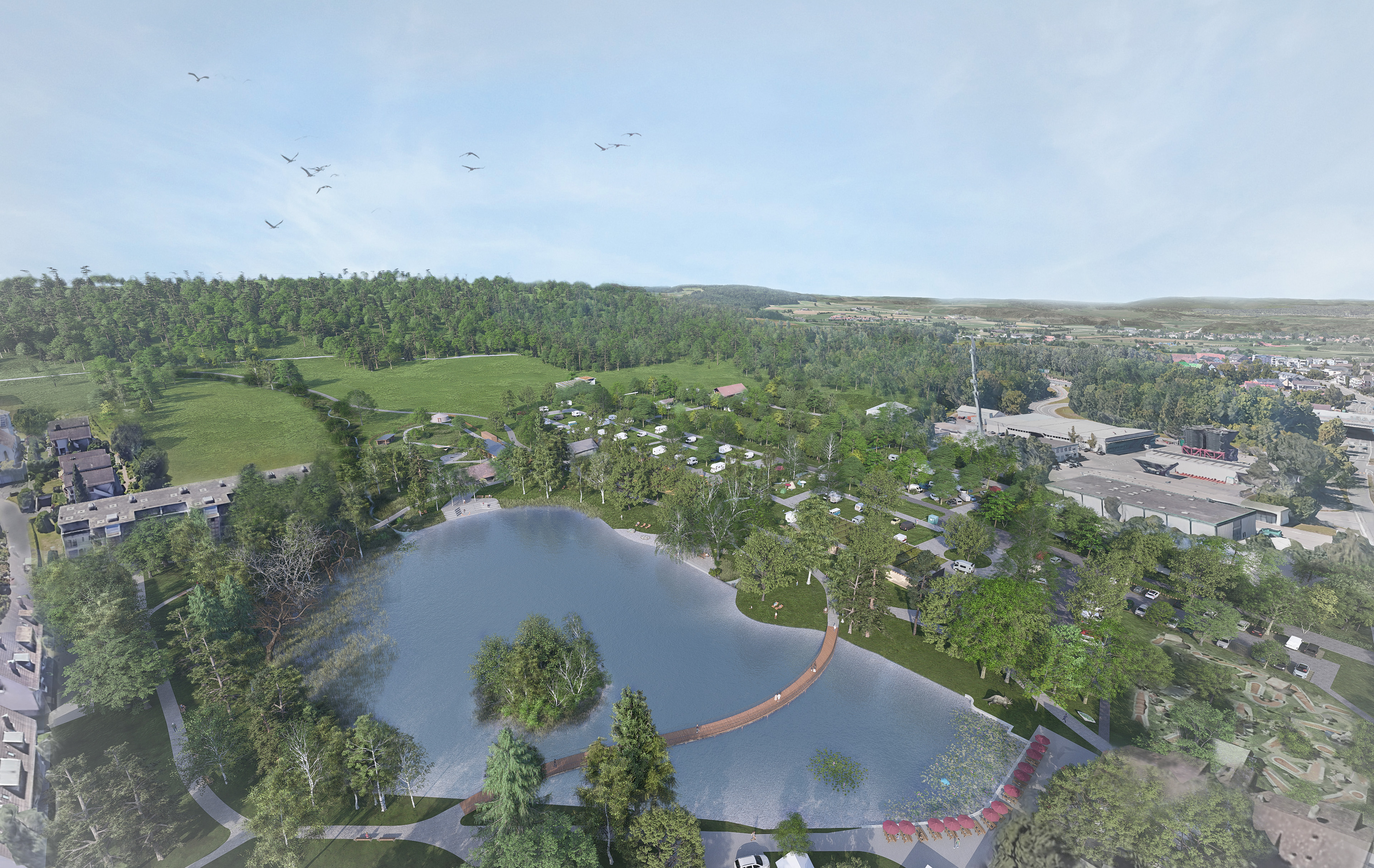 Der wichtige Erholungsraum Rosenberg rund um den Schützenweiher soll umfassend aufgewertet werden. Der städtische Campingplatz wird modernisiert und vergrössert. Der Weiher wird saniert, seine Zu- und Abflüsse werden offengelegt und renaturiert. Bestehende Defizite beim Hochwasserschutz und bei der Verkehrserschliessung werden behoben. Winterthur profitiert von einem vielfältigen Ausflugs-, Natur- und Naherholungsraum samt Uferpark, neuem Spielplatz und Holzsteg.