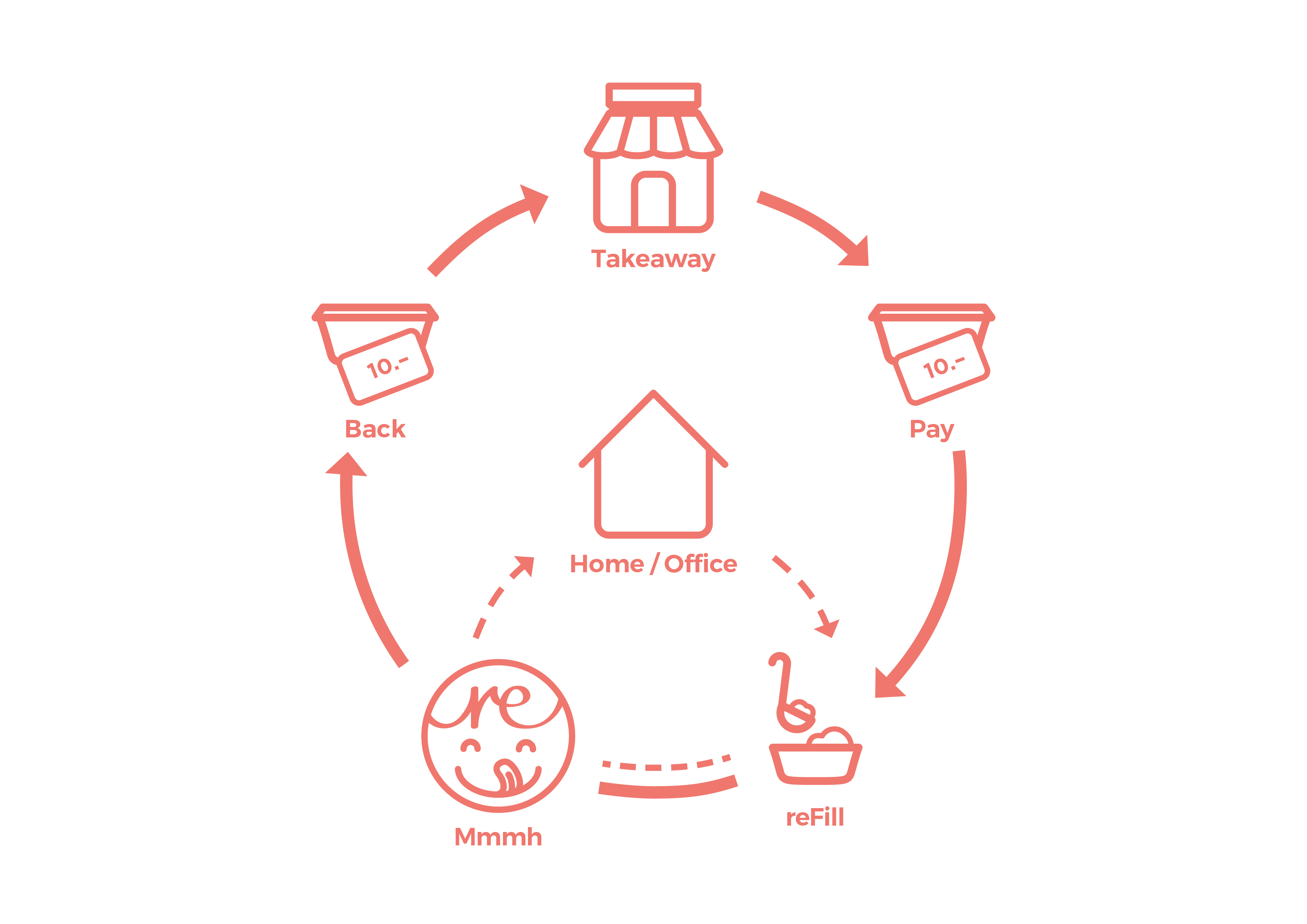 Kreislauf Mehrwegsystem Unterwegsverpflegung der Organisation «Recircle»