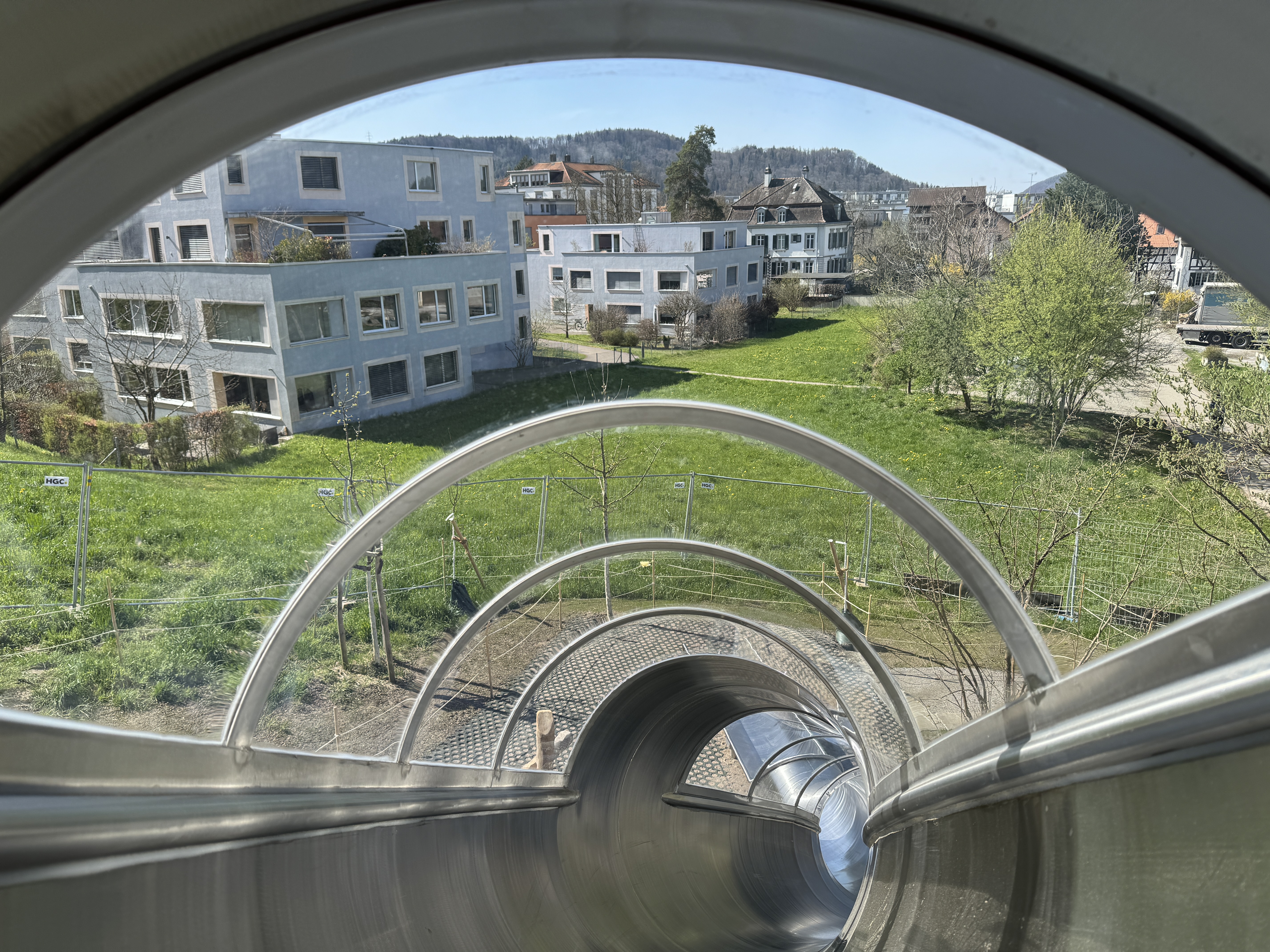 Wer die neue, dreizehn Meter lange Röhrenrutsche am Hang der Schenkelwiese beim Dellerrain in Wülflingen ausprobieren möchte, gelangt je nach gewähltem Weg über dicke Rundhölzer oder abenteuerliche Seilnetzkonstruktionen zum Start der Rutschpartie im neuen Turm mit Plexiglasdach. Im Februar vor einem Jahr wurde die vorherige Spielanlage aus dem Jahr 2008 durch ein zeuselndes Kind in Brand gesteckt und nahm irreparablen Schaden. Die Eltern des Kindes mussten den Restwert an die Erneuerung der Spielanlage, die für 2025 geplant war, beisteuern. Der Stadtrat hat für die Erneuerung im August 2023 einen Kredit von 220'000 Franken zulasten der Investitionsrechnung bewilligt. Im Kredit inbegriffen sind auch die Pflanzungen von zwei zusätzlichen Obstbäumen sowie einiger Haselsträucher.