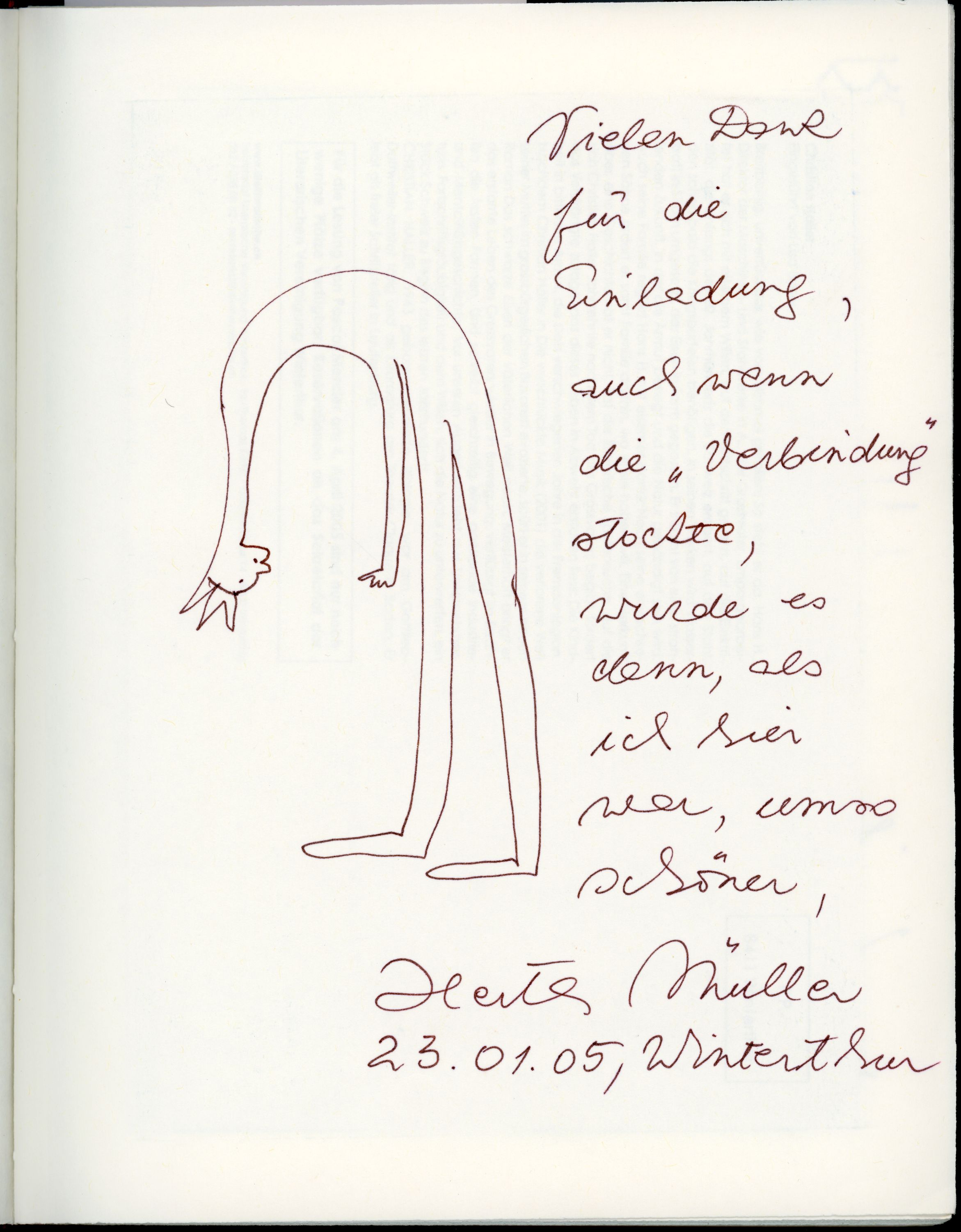 Auszug Gästebuch der Literarischen Gesellschaft: Herta Mueller (Foto aus dem Neujahrsblatt)