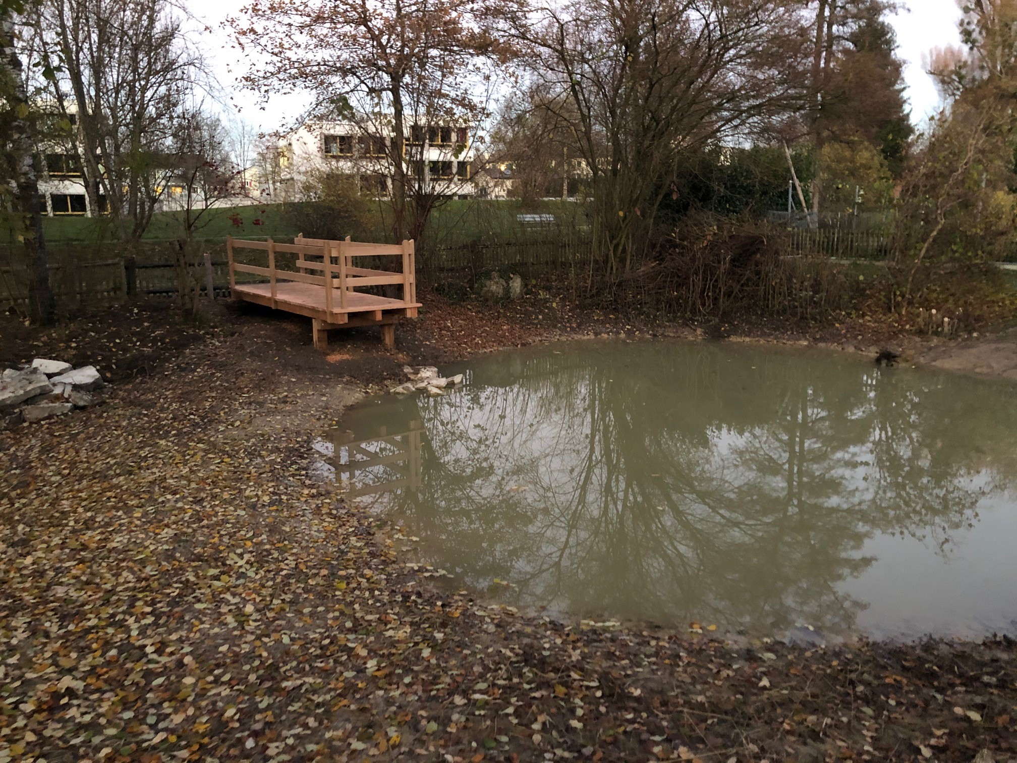 So wurde diesen Herbst ein kleiner Teich im Spickel zwischen Mattenbachweg und Birkenfussweg so angepasst, dass er seine Funktion als Feuchtgebiet und Laichgewässer für Grasfrösche, Molche und Kröten besser erfüllt. Dazu wurde der Teich in zwei Zonen unterteilt. Im östlichen Teil des Teichs wurde das Ufer erhöht. Dieser wird so wie bisher vom parallel zum Teich verlaufenden Qualletbach gespiesen. Der westliche Teil wurde belassen, sodass die Fläche nur durch Grundwasser oder beim Überlaufen des östlichen Teichs Wasser erhält und dazwischen austrocknet. So konnte ein typisches Feuchtgebiet geschaffen werden. Im gesamten Spickel hat die Natur Vorrang. Sie soll deshalb nicht betreten werden. Für Interessierte wurde aber eine Plattform erstellt, von der aus sie die Tiere und Pflanzen im Teich beobachten können. Um die beiden Zonen herum wurden zudem Strauchinseln und Steinhaufen als Landlebensraum angelegt.