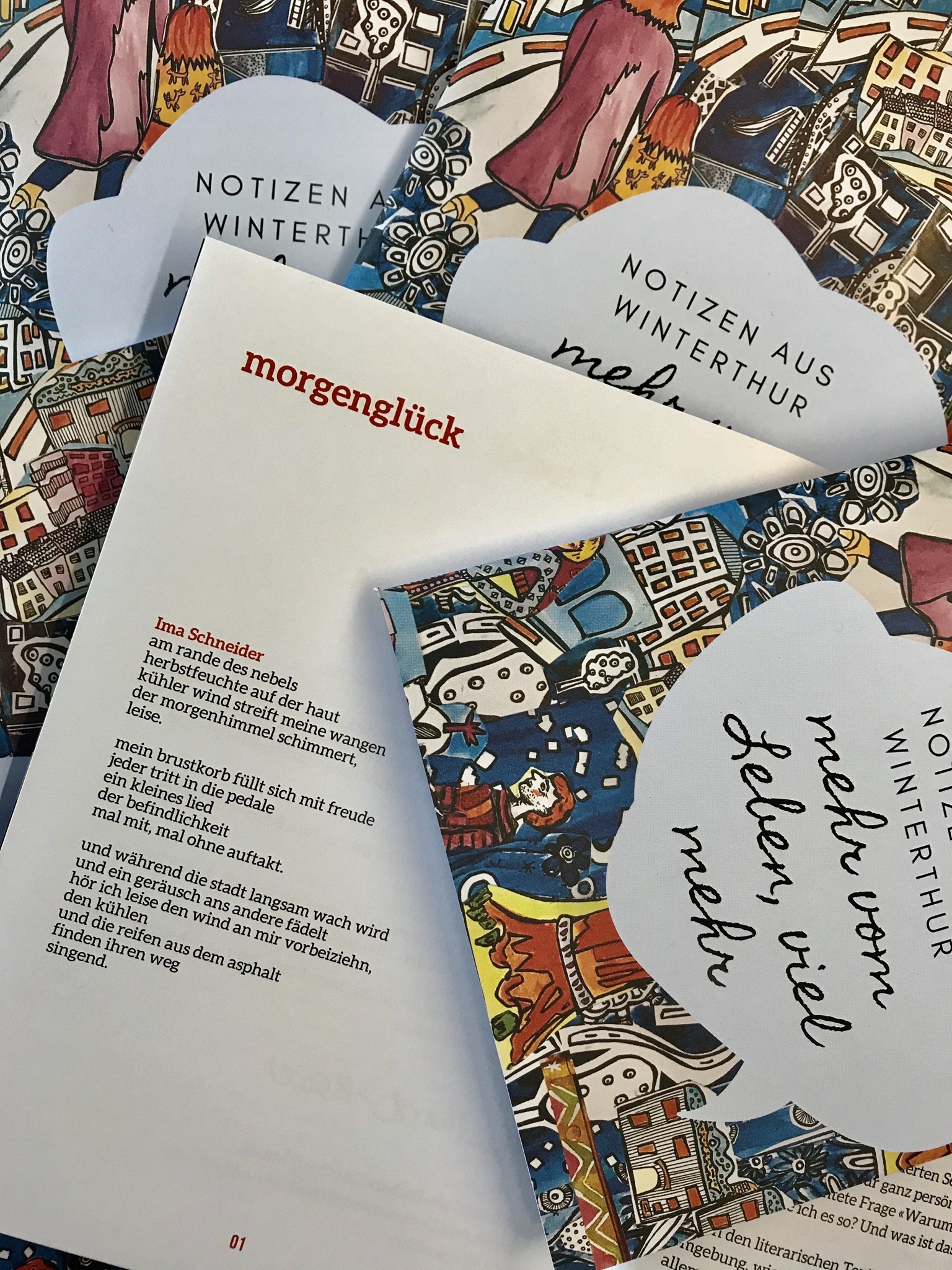 Gesammelt sind die Texte in einem Heft mit dem Titel «Mehr vom Leben, viel mehr – Notizen aus Winterthur», herausgegeben vom Umwelt- und Gesundheitsschutz der Stadt Winterthur. Der Titel stammt aus der Geschichte «Susanna geht auf eine Reise» von Romana Ganzoni. Die in Celerina lebende Schriftstellerin Romana Ganzoni hat in ihrer Kindheit viel Zeit in Winterthur verbracht und dieses Jahr den Bündner Literaturpreis 2020 gewonnen.