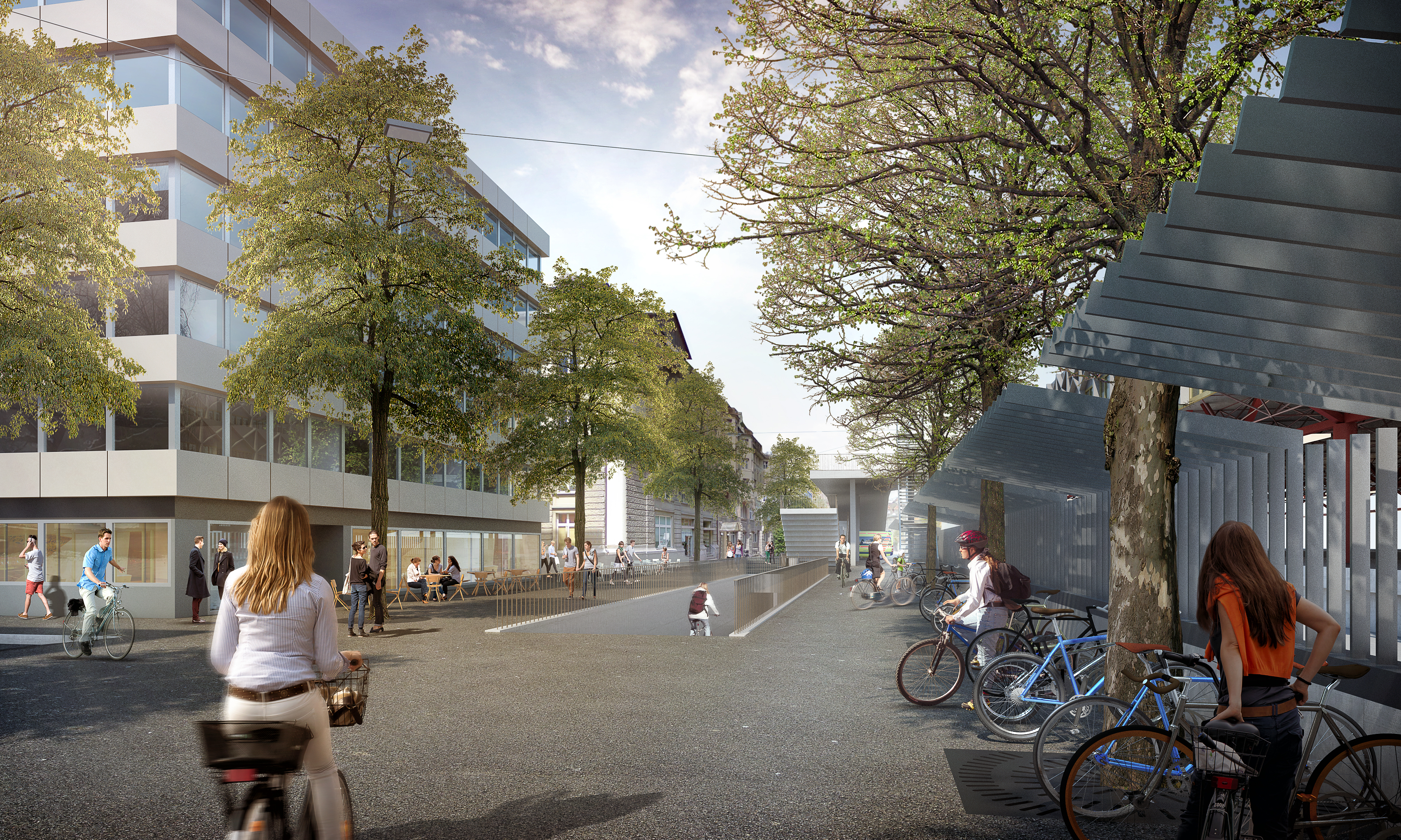 Visualisierung Neugestaltung Rudolfstr mit Velorampe Blickrichtung Norden