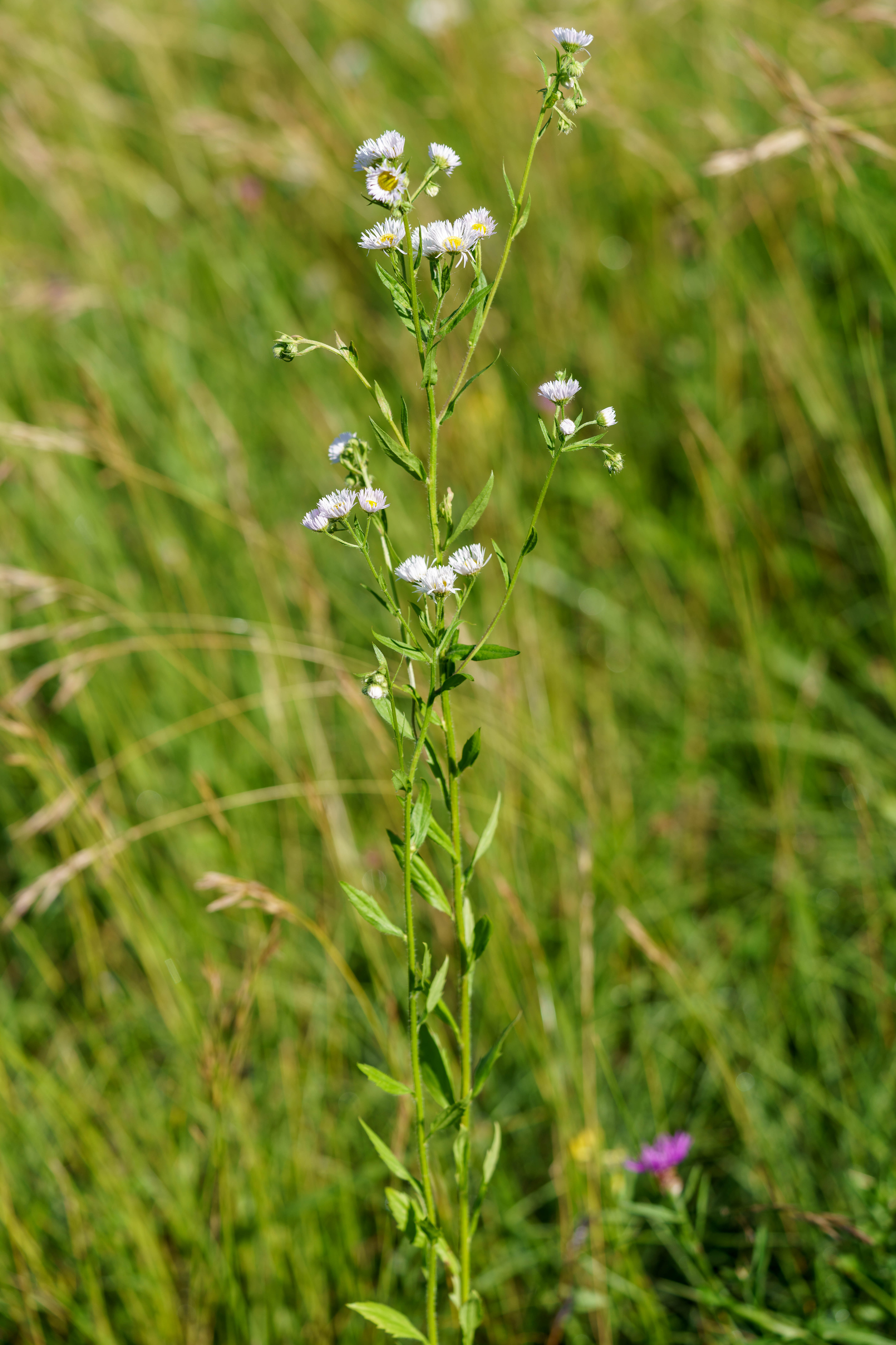 Das Einjährige Berufkraut ähnelt einem aufgestängelten Gänseblümchen, einer echten Kamille, einer Wiesen-Margerite oder einer Lanzettblättrigen Aster. Die Blütenkörbchen des Berufkraut sind ein bis zwei Zentimeter breit und haben viele schmale Zungenblüten in weiss bis lila. Die Pflanze wird bis zu eineinhalb Meter hoch, hat behaarte Stängel, die oben verzweigen und hellgrüne, behaarte Blätter, die am Rand grob gezähnt sind. Das Berufkraut verbreitet seine Samen über den Wind. Eine einzige Pflanze kann bis zu 50'000 Samen produzieren. Von der Invasion dieser gebietsfremden Art betroffen sind vor allem die Landwirtschaft, Naturschutzflächen, Magerwiesen, Strassenränder, Flachdächer und Industriebrachen.