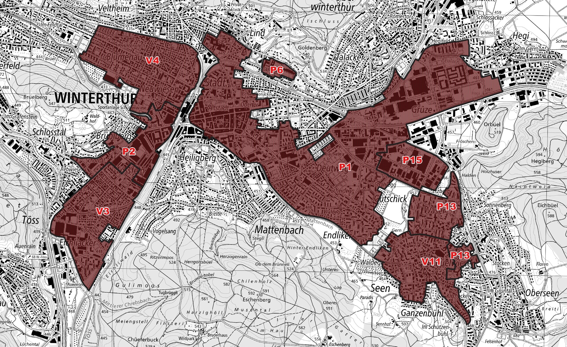 Im gleichen Massnahmenpaket sind die Resultate der Studie veröffentlicht worden, welche die planerische Grundlage des kommunalen Energieplans konkretisiert. Die Studie «Wärmeverbunde und -netze Winterthur» ist der erste Teil des sogenannten Masterplans. Er hat die realistisch nutzbaren Energiepotenziale und diejenigen Gebiete prioritär untersucht, die eine hohe Energiedichte aufweisen und somit wirtschaftlich und ökologisch mit Wärmenetzen erschlossen werden können. Die restlichen Gebiete mit tieferer Realisationswahrscheinlichkeit werden in einer nachfolgenden zweiten Studie untersucht. Grundsätzlich können rund 45 Prozent des gesamtstädtischen Wärmebedarfs durch städtische Wärmenetze abgedeckt werden. Von diesen städtischen Wärmenetzen sind knapp zwei Drittel bereits realisiert. Für rund 55 Prozent des gesamtstädtischen Wärmebedarfs müssen private Wärmelösungen gefunden werden.