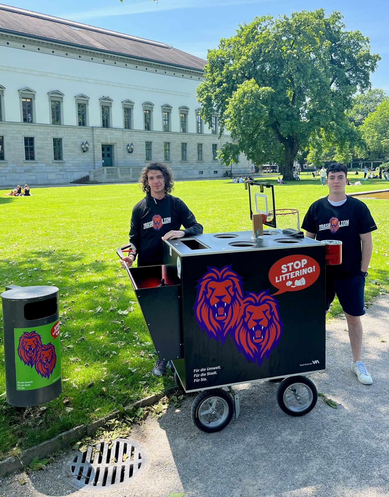Die beiden als «Trash Lions» engagierten Studierenden sprechen Personen an, die sich im öffentlichen Raum verpflegen, und machen sie auf die Entsorgungsmöglichkeiten in der Umgebung und in ihrem «Trash-Mobil» aufmerksam. In der übrigen Zeit und bei Regenwetter sind die «Trash Lions» mit anderen Tätigkeiten innerhalb des Entsorgungsdienstes beschäftigt. Zum Beispiel sorgen sie bei Separatsammelstellen der Stadt für Ordnung, bei denen häufig Müll illegal deponiert wird, und klären Sammelstellenbesucherinnen und -besucher auf, welche Abfälle vor Ort entsorgt werden können und welche Möglichkeiten für die Entsorgung anderer Abfälle bestehen.