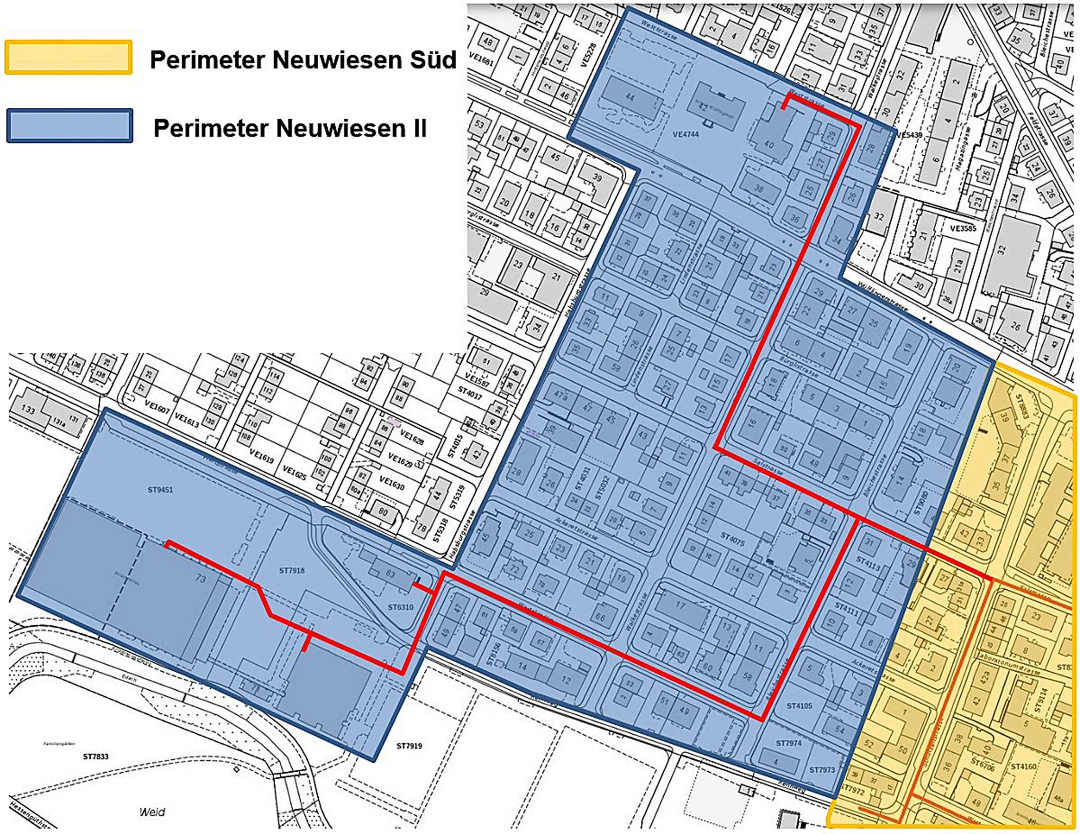 Der Winterthurer Stadtrat überweist dem Parlament einen Verpflichtungskredit von 7,5 Millionen Franken. Der Kredit finanziert die zweite Etappe der Erschliessung des Gebiets Neuwiesen mit Wärme (V4 gemäss Energieplan). Das Projekt «Neuwiesen II» sieht vor, neben privaten Liegenschaften das Primarschulhaus Wülflingerstrasse, die Eulachhallen und die kantonale Sportanlage Rennweg ans Wärmenetz anzuschliessen. Gemäss aktueller Planung werden die Bauarbeiten Ende 2028 beginnen.