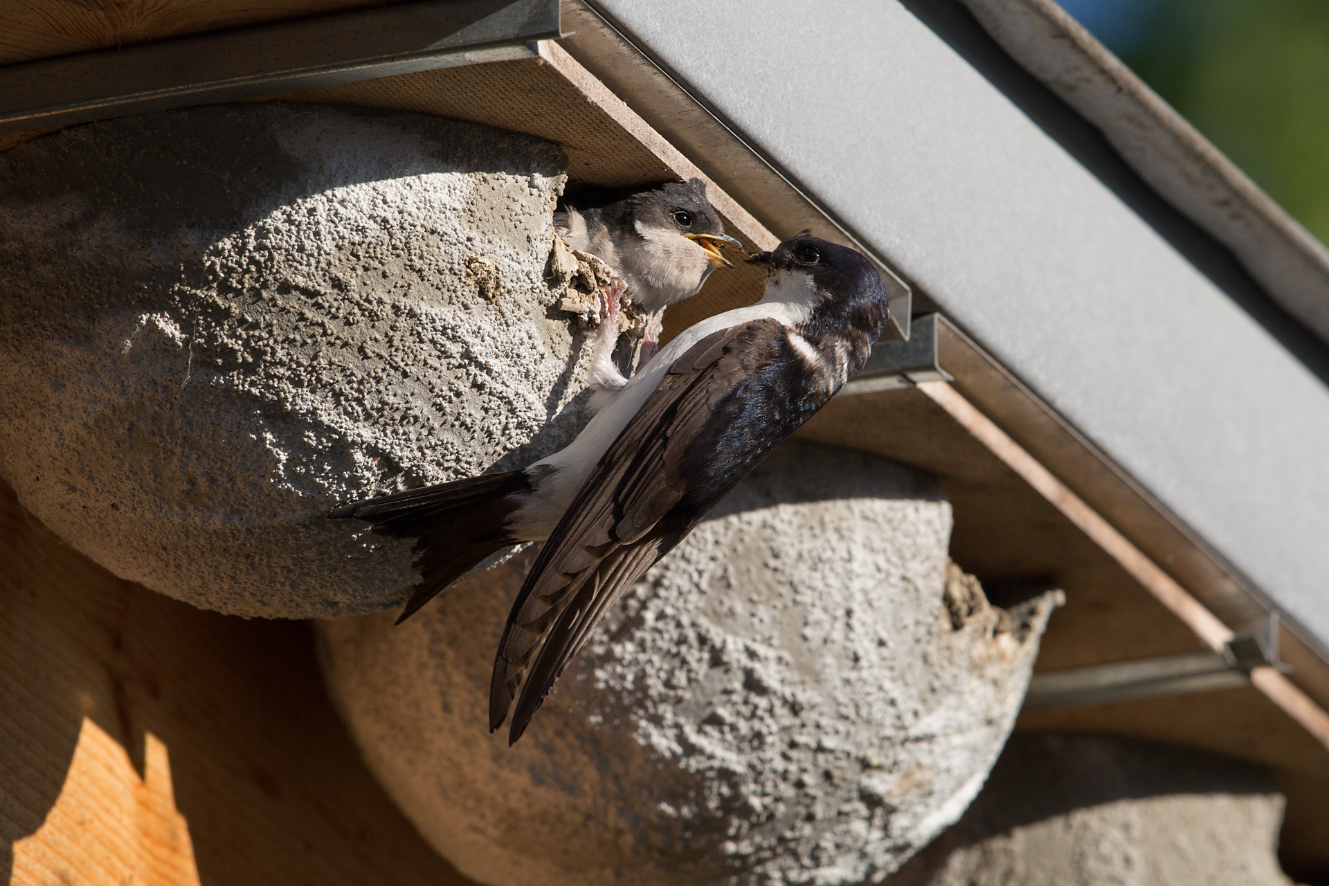 | Fütternde Mehlschwalbe Bild Stefan Wassmer | |