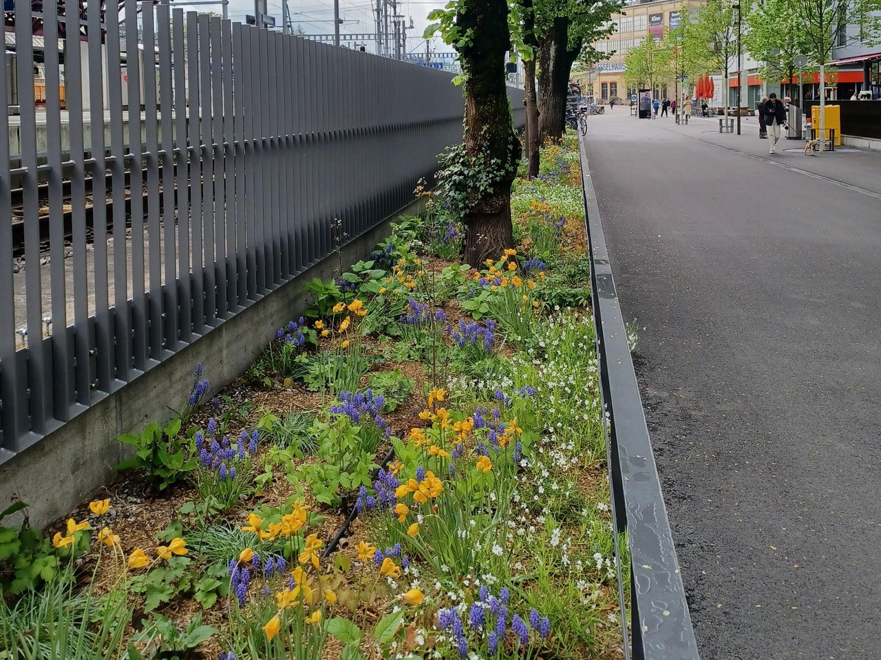 Gezielte Bepflanzungen spielen eine wichtige Rolle, um Hitzeinseln zu entschärfen und die Aufenthaltsqualität im öffentlichen Raum zu verbessern. Dabei stehen oft höhere Gestaltungsansprüche mit einer ganzjährigen Zierwirkung im Vordergrund. Einheimische Stauden, Sträucher und Bäume wie auch ausgewählte Zierarten finden hier ihren Platz und verschönern dauerhaft ihre Umgebung. Die von Frühling bis Herbst bunt blühende Blütenpracht, vielfältige Formen und Farben, Duftpflanzen, die goldene Herbstfärbung oder der Rauhreif, der in standfesten Blütenständen hängen bleibt, locken Menschen wie auch Tiere ins Grüne. Durch die passende Auswahl einer vielfältigen Staudenpflanzung kann die Blütezeit und somit auch das Nahrungsangebot bewusst verlängert, oder auf lokal vorkommende Insekten abgestimmt werden.