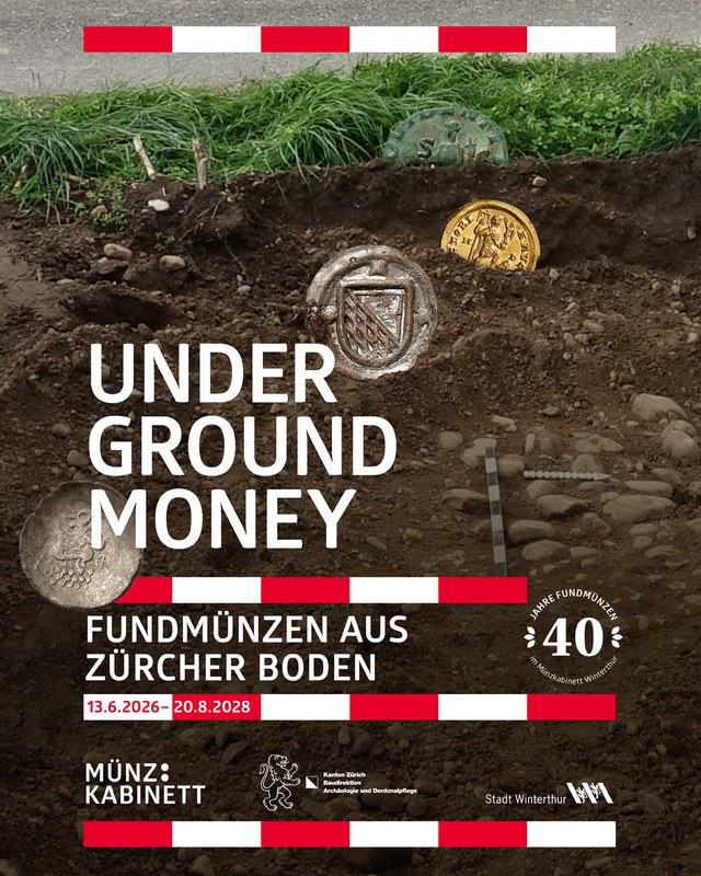 Seit 1986, also nunmehr 40 Jahren, werden die Fundmünzen des Kantons Zürich, welche in archäologischen Grabungen oder durch Sondengänger und Privatpersonen ausgegraben oder gefunden wurden, im Münzkabinett Winterthur bearbeitet, ausgewertet und aufbewahrt. Diesem Jubiläum ist die neue Ausstellung in Kooperation mit der Kantonsarchäologie Zürich im Münzkabinett gewidmet.