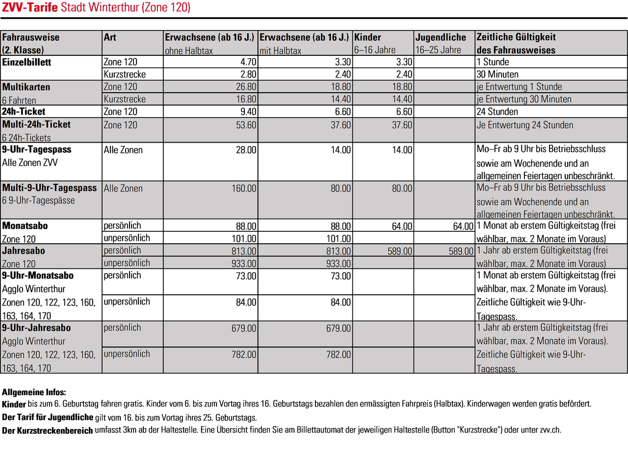 Die beliebtesten Tickets in Winterthur (Zone 120)