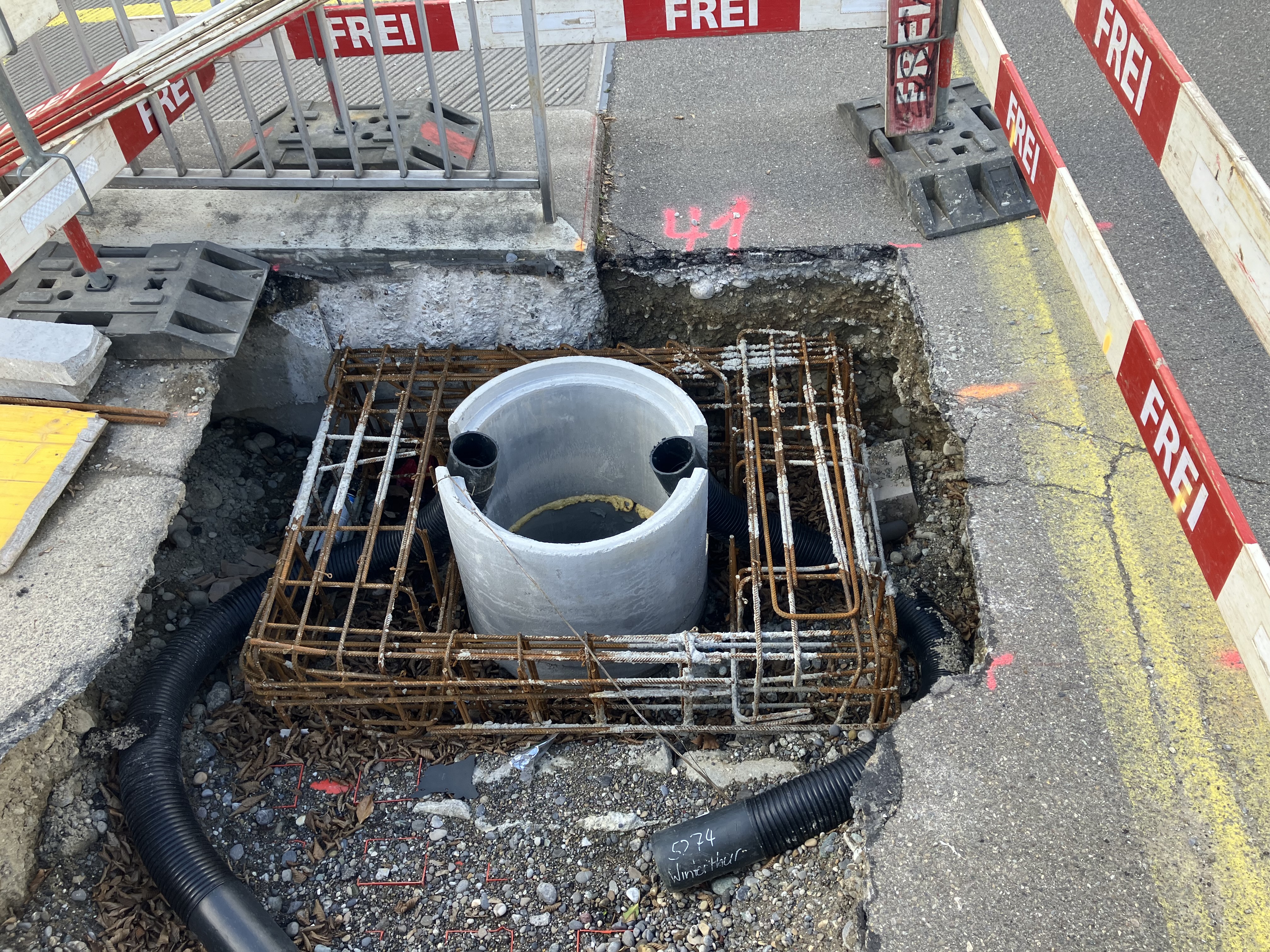 Die Bauarbeiten haben bereits im Februar 2024 begonnen und sind an der Industrie-, der Rudolf-Diesel- und der Seenerstrasse gut sichtbar. Es handelt sich dabei um den Aushub für die Fundamente der 96 neuen Masten. Zusammen mit 36 sogenannten Mauerankern an Gebäuden werden sie die neuen Fahrleitungen halten. Voraussichtlich im Frühsommer erfolgt die Montage der je ca. eine Tonne schweren und durchschnittlich zehn Meter hohen Masten. Danach können die beauftragten Unternehmen die zwölf Millimeter dicken Kupferdrähte der Fahrleitungen aufziehen. Verläuft alles nach Plan, so ist die elektrifizierte Buslinie 5 auf den Fahrplanwechsel 2024/2025 (15. Dezember 2024) bereit. Das hängt allerdings auch von der rechtzeitigen Lieferung des Materials ab, was jüngst mit gewissen Unsicherheiten verbunden war.