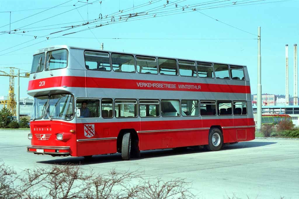 Der Bus hat eine bewegte Geschichte. In den 1970er-Jahren stand er als eines von fünf Fahrzeugen für die Swissair als sogenannter Flugzeugzubringer auf dem Flughafen Kloten im Einsatz. 1981 erwarben die damaligen Winterthurer Verkehrsbetriebe zwei dieser Büssing-Busse und setzten sie zwischen 1982 und 1989 als Schnellverbindung zwischen Hauptbahnhof und Technorama ein. Ein Fahrzeug musste Stadtbus Winterthur 1991 entsorgen, da es zu viele Defekte aufwies. Der zweite Bus kam immer wieder für Spezialfahrten zum Einsatz.
