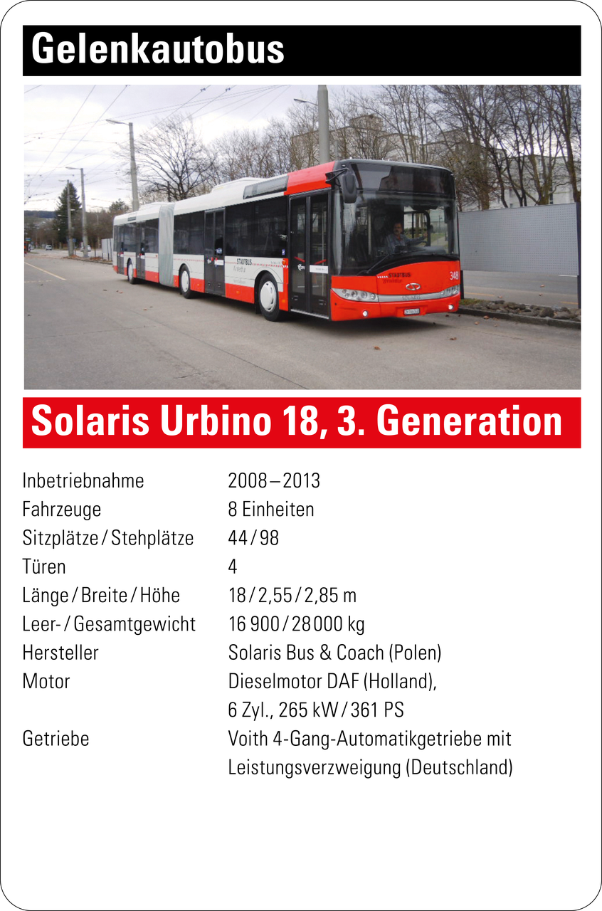 Unser Fahrzeugpark besteht aus Doppelgelenk- und gelenktrolleybussen, Autobussen sowie Gelenkautobussen. Fahrzeuge der Marken Hess, Solaris und MAN stehen täglich im Einsatz. Zusätzlich dazu haben wir noch verschiedene Spezialfahrzeuge im Fuhrpark.