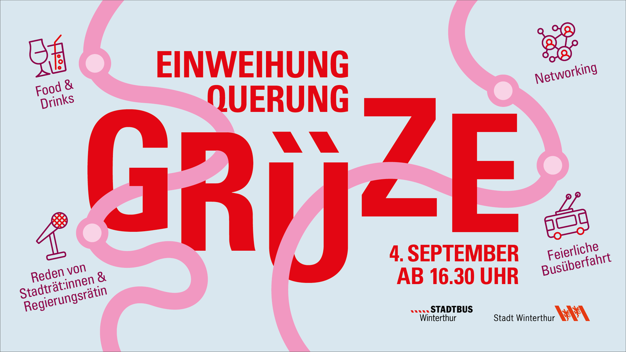 Ein bedeutender Schritt für Winterthur ist geschafft: Die Querung Grüze ist bereit. Feiern Sie diesen Meilenstein am 4. September 2026 gemeinsam mit uns vor Ort!