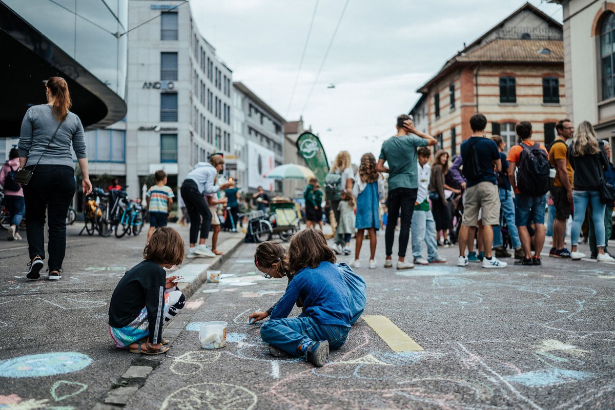 Wo sonst Autos fahren, wird gespielt und flaniert, werden neue Fortbewegungsmittel ausprobiert und Klimafragen diskutiert. Auch ein selbst gemachtes Picknick, eigene Spiele, Rollschuhe und Velos sind willkommen.