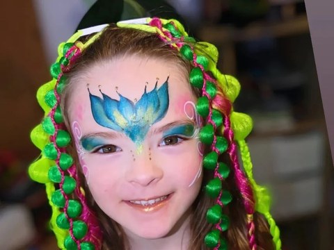 Ob Tiger, Drache, Einhorn oder Prinzessin: Mit gekonnten Pinselstrichen zaubert Elena Langhard bunte Motive auf Kindergesichter. Unter den vielen Vorlagen findet jedes Kind sein passendes Wunschmotiv.