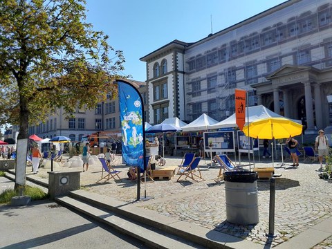 Um 13 Uhr, sowie um 15 Uhr wird eine Stadtführung zum Thema Schwammstadt, Entwässerung und Biodiversität angeboten. Dabei wird aufgezeigt wie sich das Bild einer ans Klima angepassten Stadt verändern könnte, und Sie werden sensibilisiert für die Widersprüche der gesellschaftlichen Anforderungen und Wünsche. Start und Endpunkt ist am Infostand.
