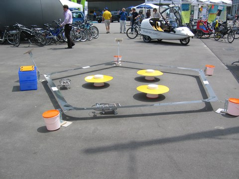 In der «Solar-Arena» können Sie ein Solarmodellauto mit der Sonne steuern und Ihr Geschick testen. Die mobile Solar-Arena besteht aus einem Schattenzaun mit einer Abschrankung und einem Bodenbelag. Der Schattenzaun ist als Sechseck oder als Achteck aufbaubar. Innerhalb des Schattenzauns fahren ein oder mehrere Solarmodellautos selbständig herum und werden vom Schattenzaun zurückgewiesen. Die Zuschauerinnen und Zuschauer können mit Handspiegeln oder Schatten die Solarmodellautos steuern.