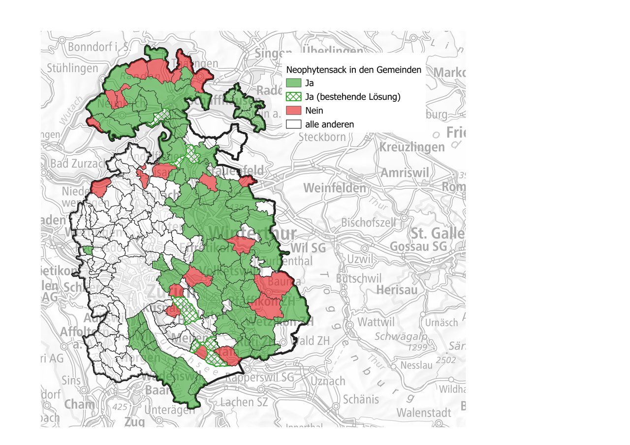 Um die Weiterverbreitung dieser exotischen Problempflanzen zu bremsen, sind grosse Anstrengungen notwendig. Die Mithilfe der Bevölkerung ist dabei unerlässlich. Daher können Sie in einigen Gemeinden der Kantone Zürich und Schaffhausen den Neophytensack kostenlos beziehen und so einen wertvollen Beitrag zur Eindämmung der exotischen Problempflanzen leisten.