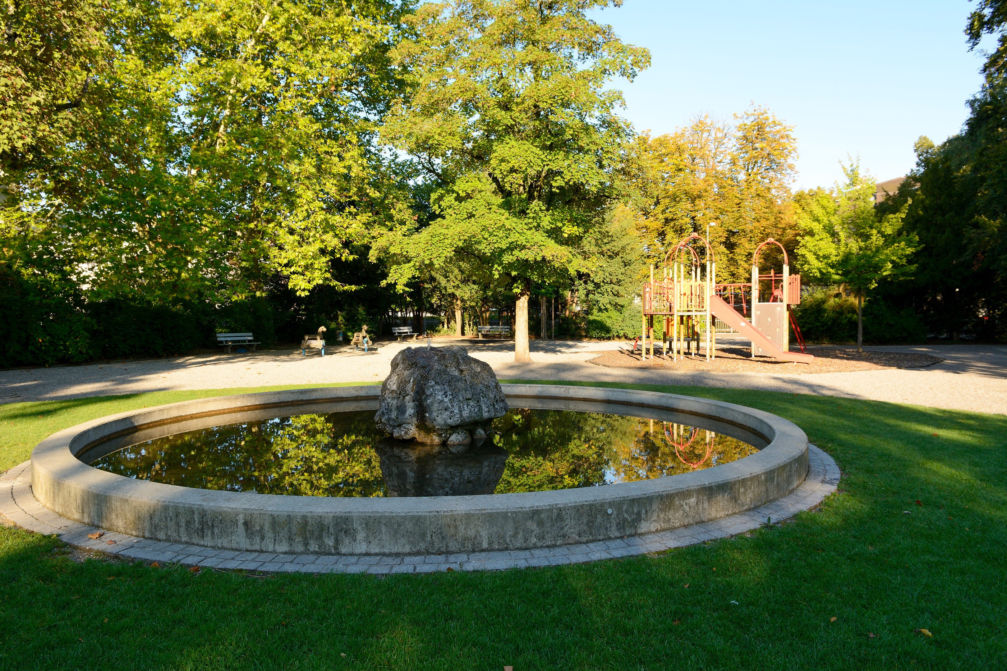 - Geschichte: 1891: Die Anlage geht auf die Gründerzeit des Quartiers Tössfeld zurück. Sie wird vom Landschaftsarchitekten Evariste Mertens in Zusammenarbeit mit dem Winterthurer Gärtner Josef Peter gestaltet.