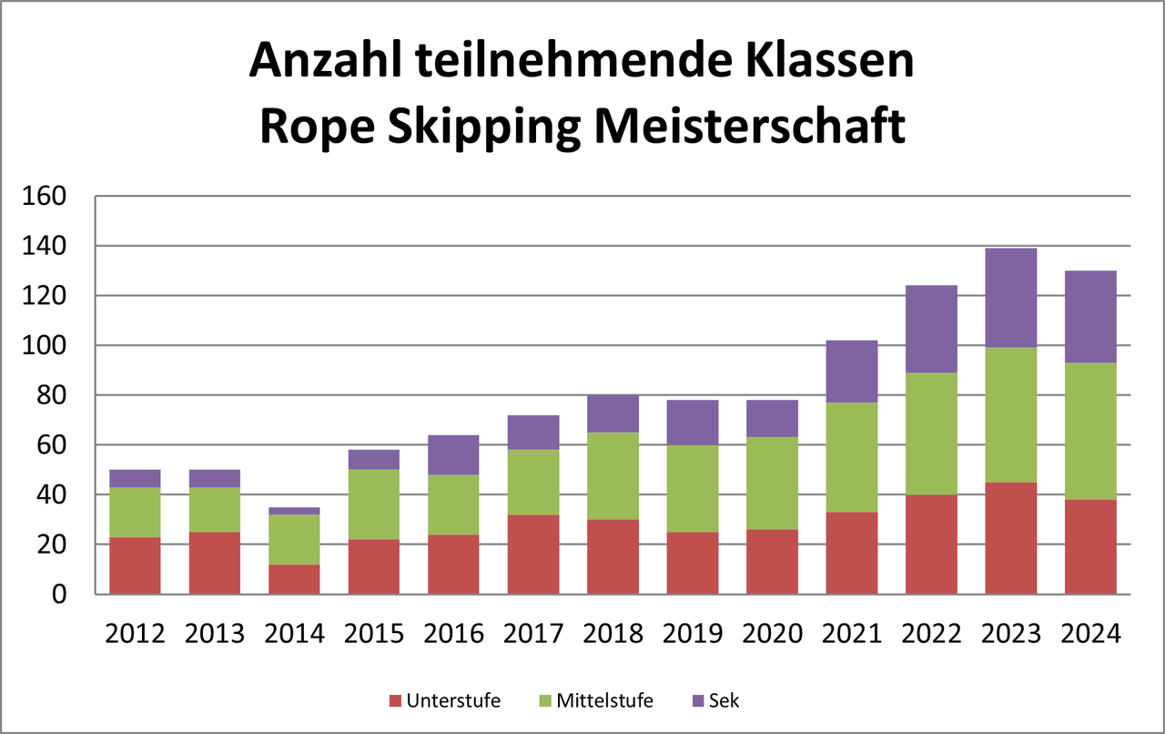 Etwas mehr als 2000 Schülerinnen und Schüler aus 130 Klassen haben an der diesjährigen Rope Skipping Meisterschaft teilgenommen. Es hat sogar drei Einträge in die ewige Bestenliste gegeben!