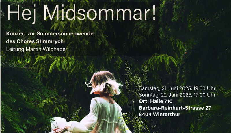 Pünktlich zur Sommerwende lädt Stimmrych zum Konzert ein. Nebst Pop-Klassikern und Spirituals präsentieren sie zur Feier der Sommersonnenwende auch einige der bekanntesten schwedischen schwedische Volkslieder.