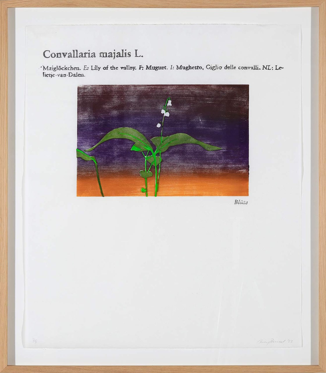 "Das Verhältnis zwischen Mensch und Natur interessiert mich, in den hier gezeigten Arbeiten besonders die gegenseitige Bedrohung. Am Beispiel des Maiglöckchens wird uns dies bewusst: Der natürliche Schutz, die Toxizität des Maiglöckchens reicht offenbar nicht aus, um die Bedrohung durch den Menschen abzuwehren, sodass das Maiglöckchen unter Naturschutz gestellt werden musste um es vom Verschwinden zu retten.