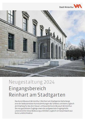 Das Kunst Museum Winterthur | Reinhart am Stadtgarten beherbergt eine der bedeutendsten Kunstsammlungen der Schweiz und dient zugleich als Empfang für das drei Häuser umfassende Kunst Museum Winterthur. Die neu gestalteten Zugänge sowie die aufgewertete Eingangshalle unterstreichen diese Bedeutung und bilden zugleich ein Gesamtwerk aus Kunst und Architektur.