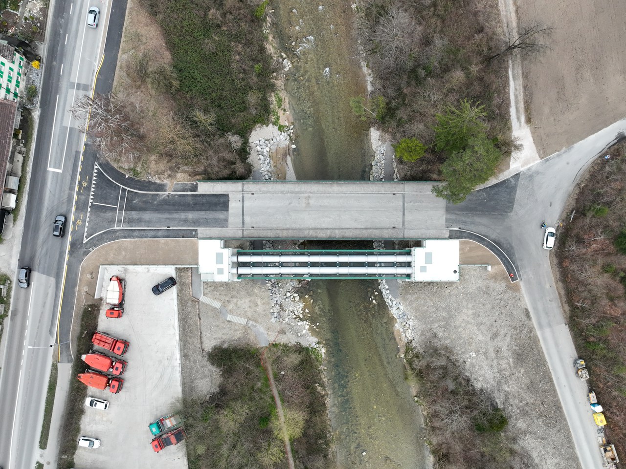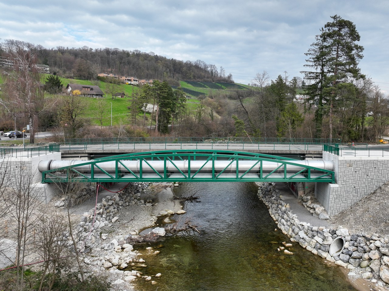 Die Brückenverkleidungen mit Nist- und Rückzugsplätzen für Vögel und Fledermäuse wurden im November fertiggestellt. Der Installationsplatz Nord bei Mühle Transport wurde bereits geräumt. Der Installationsplatz Süd wird noch bis zum Einbau des Deckbelags im Juni/Juli kommenden Jahres bestehen bleiben. Je nach Witterung werden die von der Baustelle betroffenen Uferpartien neu bepflanzt.