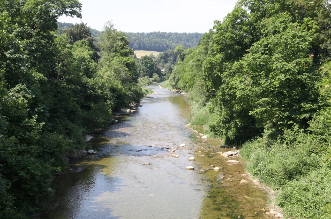 Die Wurzeln von Silberweiden und Schwarzerlen stabilisieren die Böschungen und bieten Kleintieren Schutz. In flussnahen Bereichen wachsen vereinzelt Eschen und Bergahorne. Seit den Renaturierungsprojekten der 2010er-Jahre werden gezielt standorttypische Gehölze gepflanzt, die die natürliche Flussdynamik unterstützen.