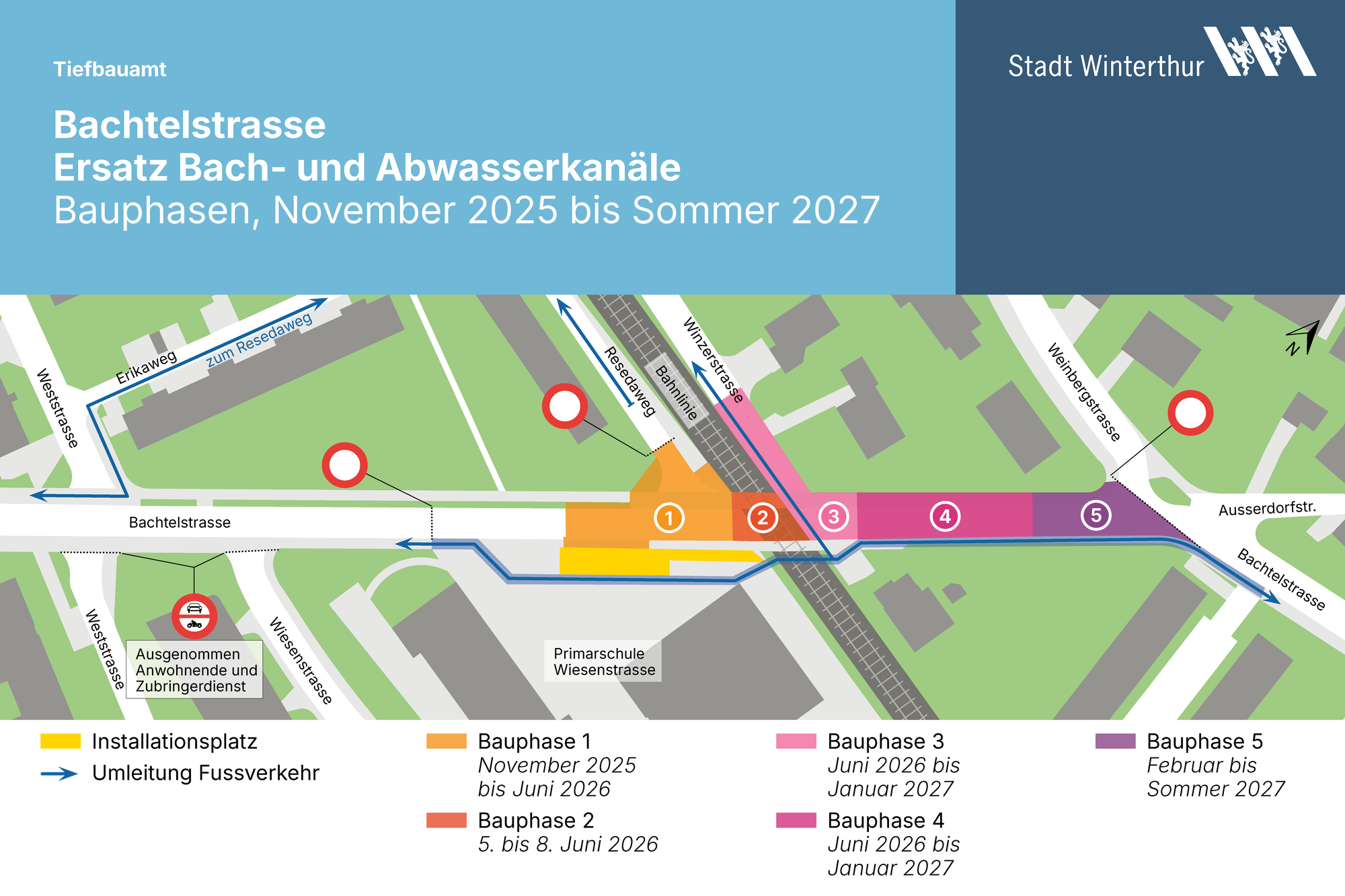 Das östlich angrenzende Gebiet zwischen Bachtel-, Wülflinger- und Feldstrasse ist für den Durchgangsverkehr gesperrt, damit kein Ausweichverkehr entsteht. Für Anwohnende ist die Zufahrt gestattet.