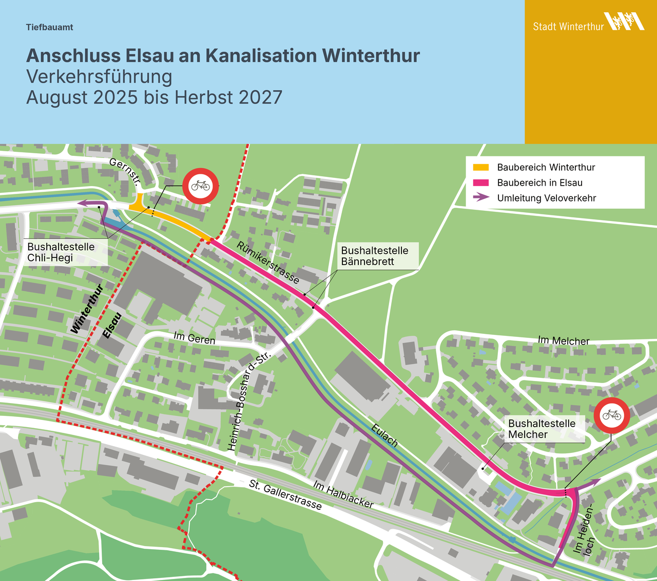 Detaillierte Informationen über das Projekt und die temporäre Verkehrsregelung finden Sie auf der Homepage der Gemeinde Elsau.