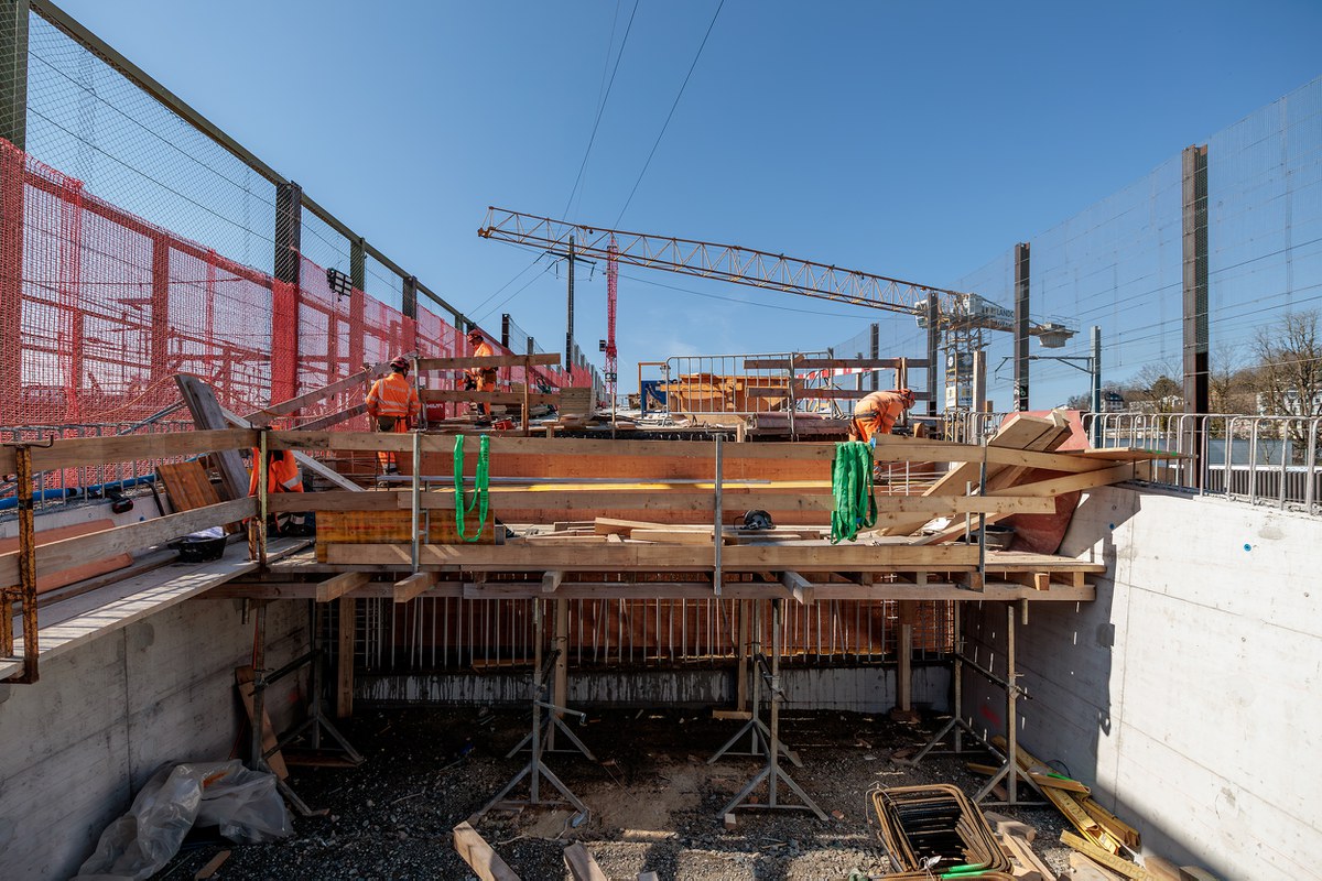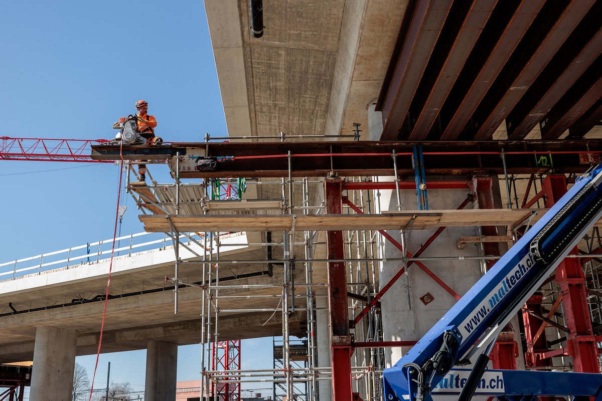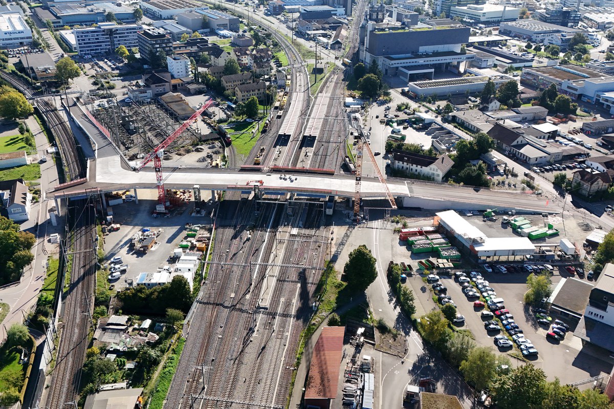 Die Schutzgerüste und deren Fundamente entlang der Frauenfelder Linie und des SBB-Unterwerks wurden abgebaut. Damit steht die Brücke weitgehend in ihrer endgültigen Form.