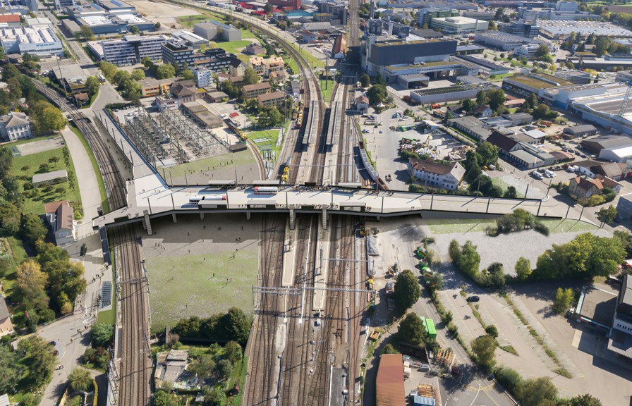 Mit der neuen SBB-Haltestelle können dann doppelt so viele Anschlüsse angeboten werden. Der Bahnhof Grüze wird zum attraktiven Umsteige-Bahnhof. Und das neue Quartier, das hier entsteht, erhält eine hervorragende ÖV-Anbindung. Das Bauwerk, das dies alles verbindet ist die Leonie-Moser-Brücke: Unten hält die S-Bahn, oben hält Stadtbus.