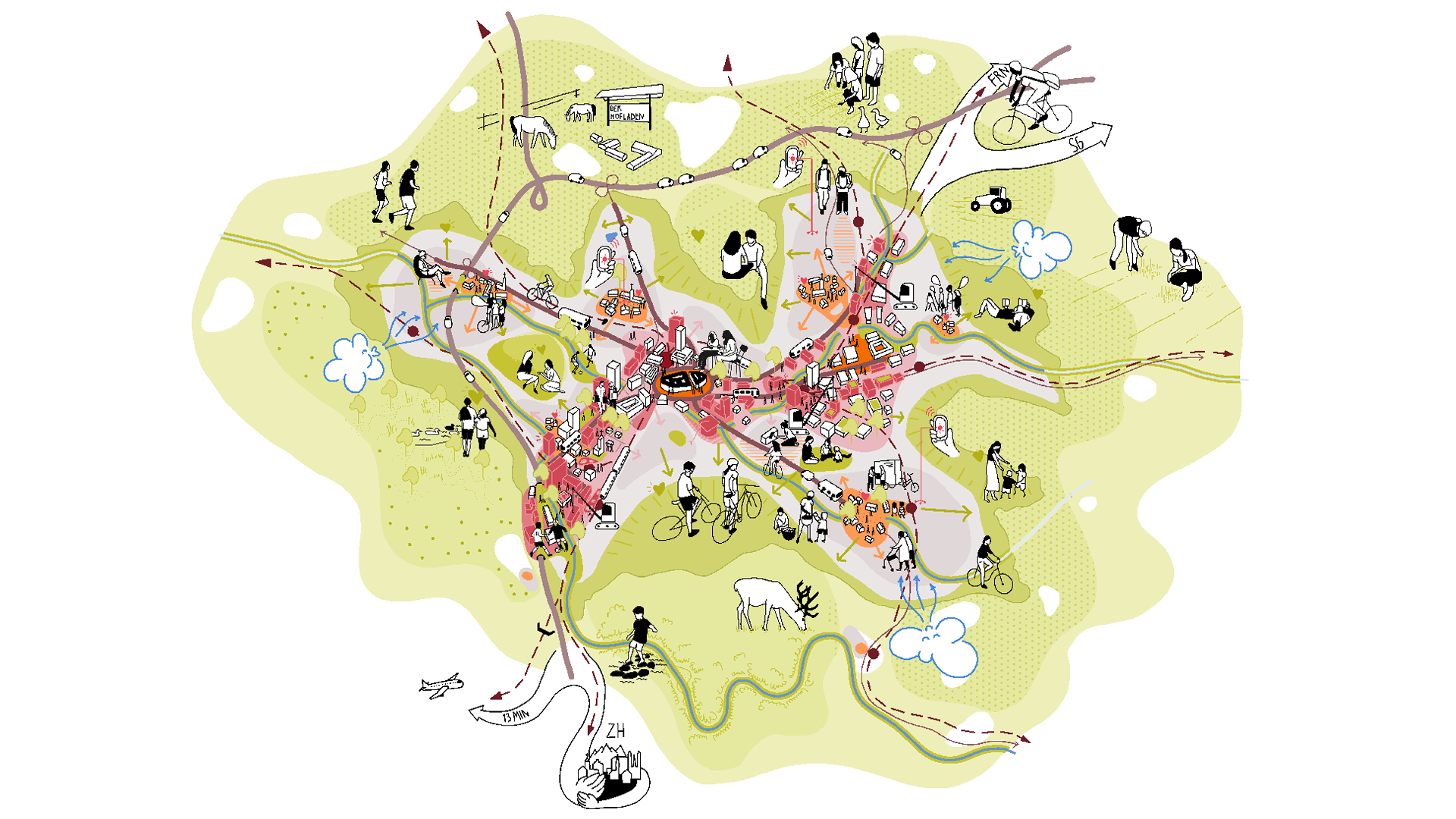 Die Räumliche Entwicklungsperspektive Winterthur 2040 formuliert die Leitideen für die langfristige räumliche Gestaltung der Stadt: Wie und wo wohnen die Winterthurerinnen und Winterthurer der nächsten Generation? Wo wird gearbeitet und was? Wie entwickelt sich der Bildungsstandort? Wo sind Grün- und Freiräume? Wie bewegen sich die Menschen durch die Stadt? Wie ist welches Gebiet erreichbar? Und welche Auswirkungen hat all das auf den Stadtraum?